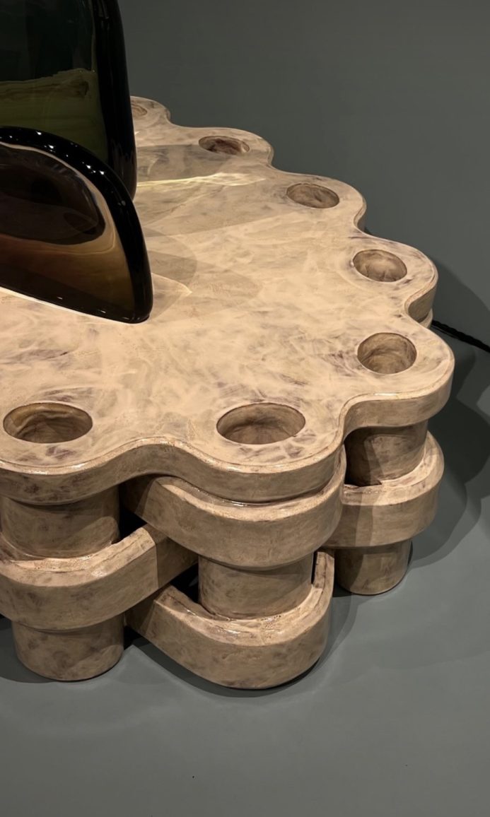 Each Crimp Table carries the trace of both hand and process, where deliberate pressure transforms the extruded material into a rhythm of soft, sculptural folds.