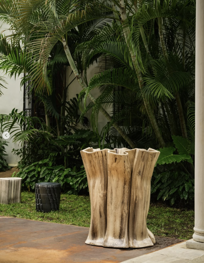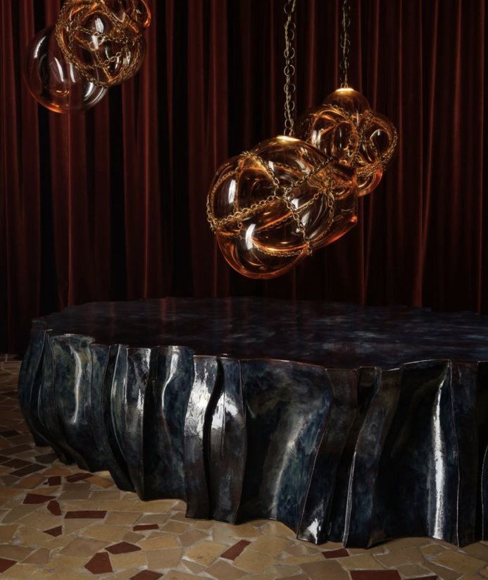 Within the gallery of The Future Perfect, the new Crimp Coffee Table and The Planter were presented. The Crimp Table reveals the expressive potential of extrusion, with ceramic forms that are pinched and folded, capturing the gesture of making within the surface.