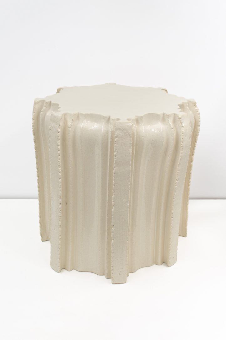 The Temple Stool reinterprets a key design in the studio's inaugural collection, crafted using its now-renowned extrusion machines. This innovative process combines extruded clay with hand-crafted profiles, allowing for the creation of forms that are both unique and consistent within a series. The result is a design that balances the individuality of artisanal craftsmanship with the precision of a repeatable method, showcasing the studio's signature approach to material and form.
