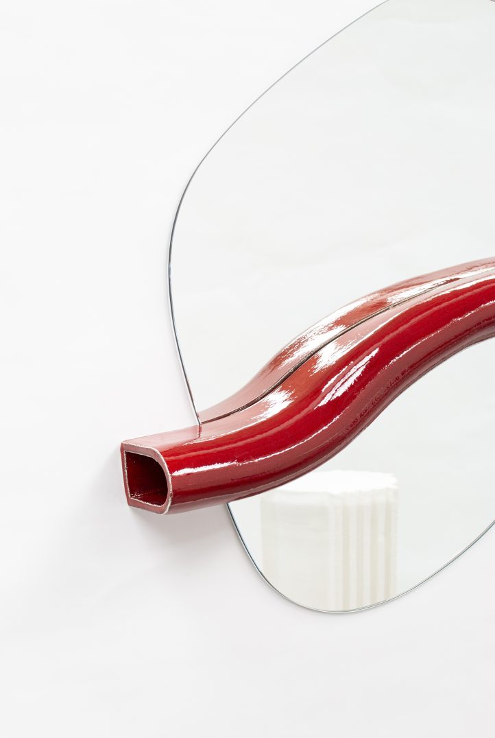Through the art of extrusion, Studio Floris Wubben harnesses the power of applied pressure and mechanical process to craft a diverse array of ceramics forms in captivating compositions. The Sunset Mirrors encapsulate these extrusions, paired with an organic, fluidly shaped mirror, creating an exciting interplay of form and function.