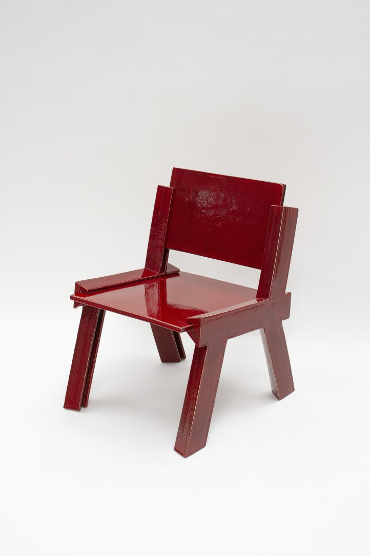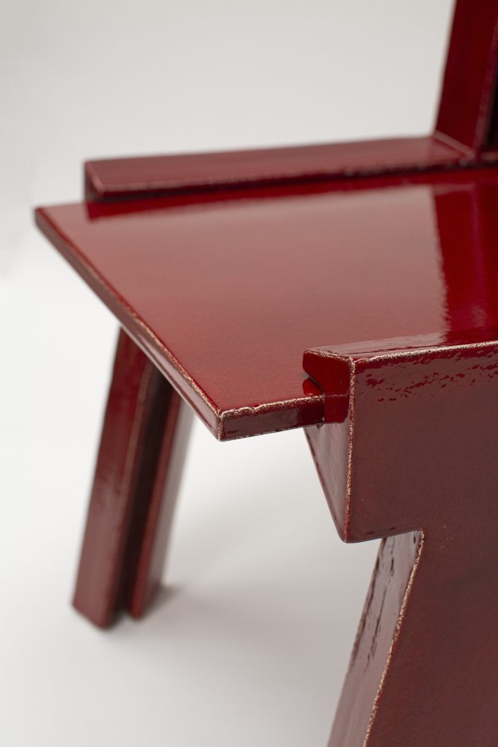 The 1240 Chair pushes the structural boundaries of ceramics by reimagining a construction technique typically used in timber joinery. The click method is adapted here to securely connect ceramic components, demonstrating both innovation and strength. Despite its delicate appearance, the chair is remarkably sturdy, thanks to its hard stoneware construction, fired at 1240°C, and the assembly method. It is available in two models: one made entirely of solid ceramics and another that combines ceramics with ash wood.